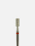 Fresa de diamante en forma de barrilito con línea roja (grano fino). Indicada para la suavización de la piel deshidratada y el tratamiento de uñas con onicofagia. Es la única fresa que puede utilizarse también en la superficie de la uña natural para la preparación de la placa ungueal.